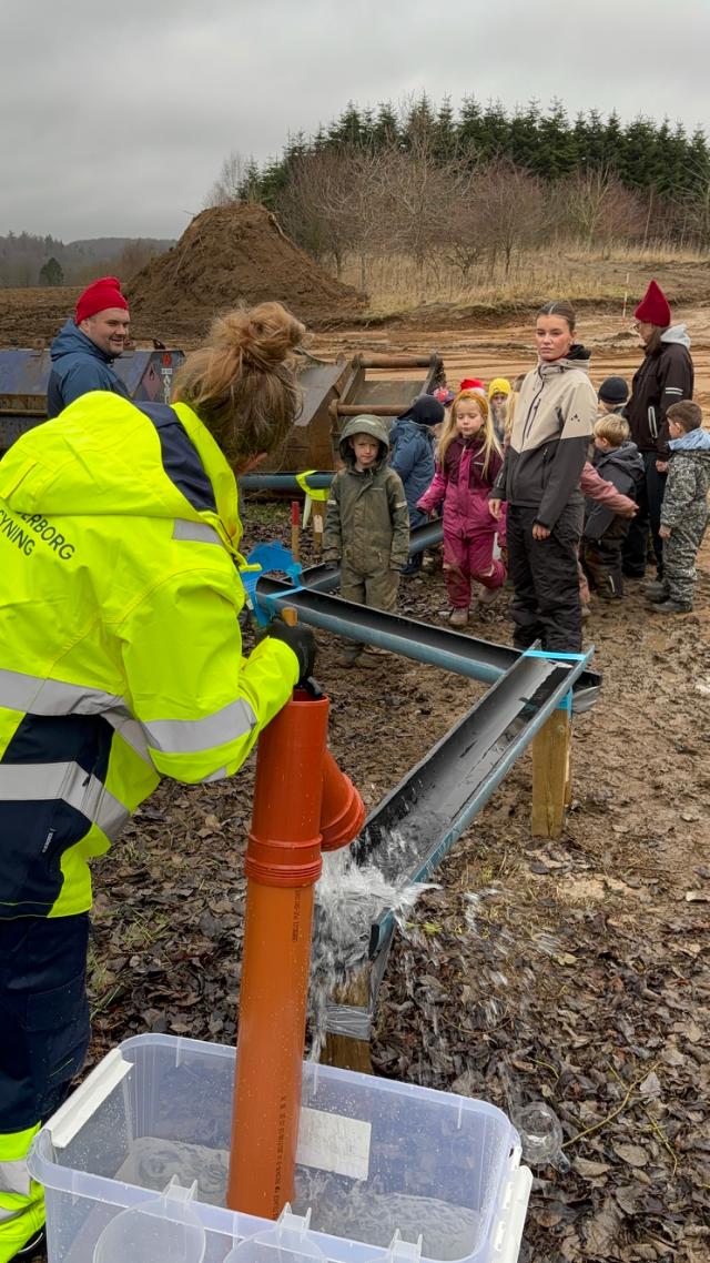 Tirsdag den 10. december tog Skanderborg Forsyning det første spadestik til Anebjerg Vandværk - med kyndig hjælp fra børnehavebørn og spejdere, der var med til at skyde byggeriet i gang.