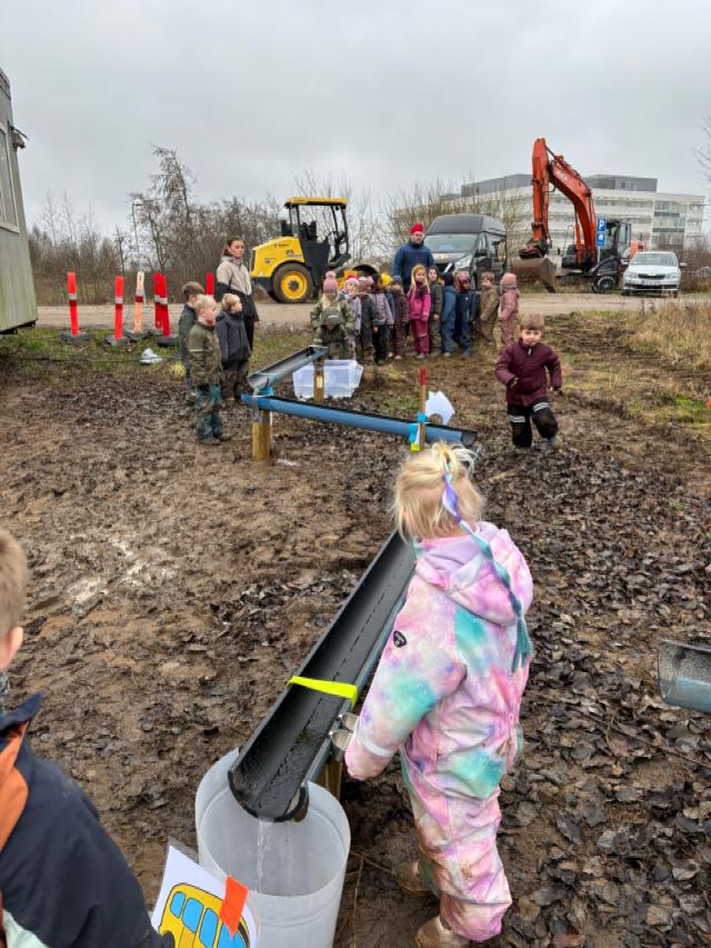 Tidligere på dagen havde børnehavebørnene lært om vandets vej fra grundvand til vandhanerne og efterfølgende taget de første 21 spadestik til det nye vandværk.