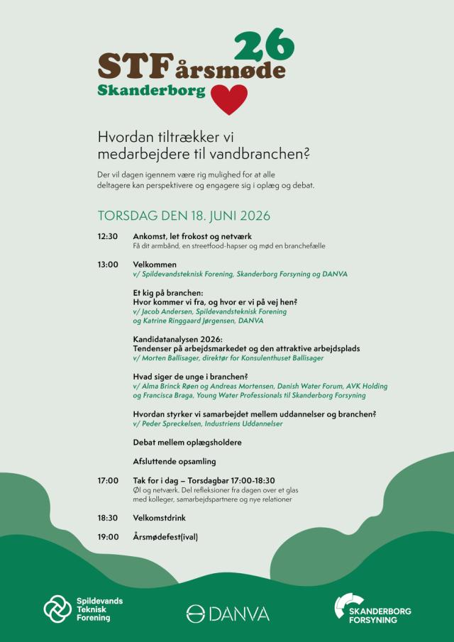 Den 18. og 19. juni inviterer Skanderborg Forsyning, Spildevandsteknisk Forening og DANVA til årsmøde 2026 under overskriften Kærligheden til Spildevand.