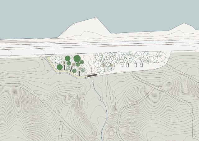 Den ene side af parkeringspladsen forbliver parkeringsplads, mens den anden side laves om til et bilfrit opholdssted med bordbænkesæt og plads til at nye udsigten til Knudsø til glæde for de mange, der går tur i området.